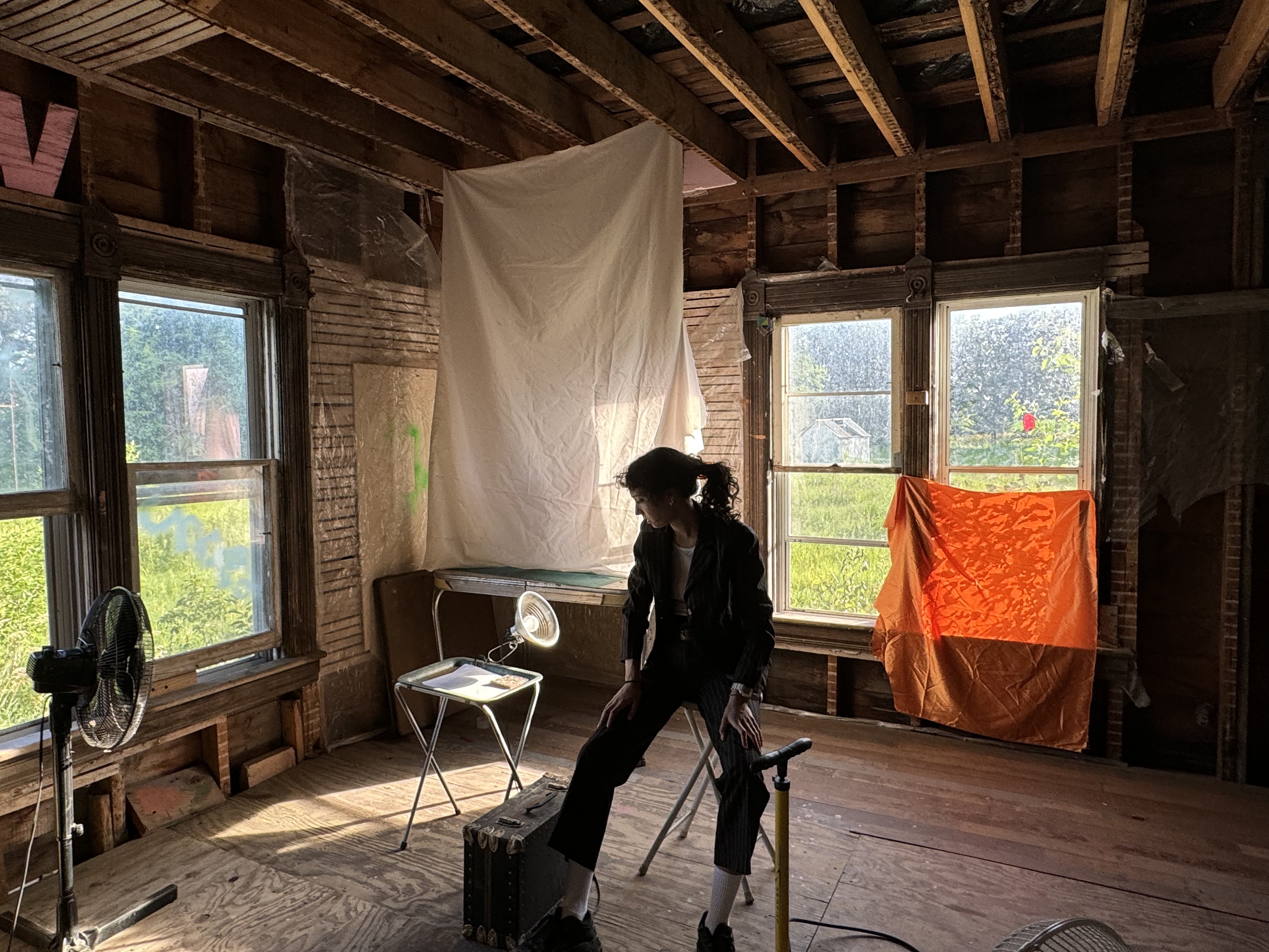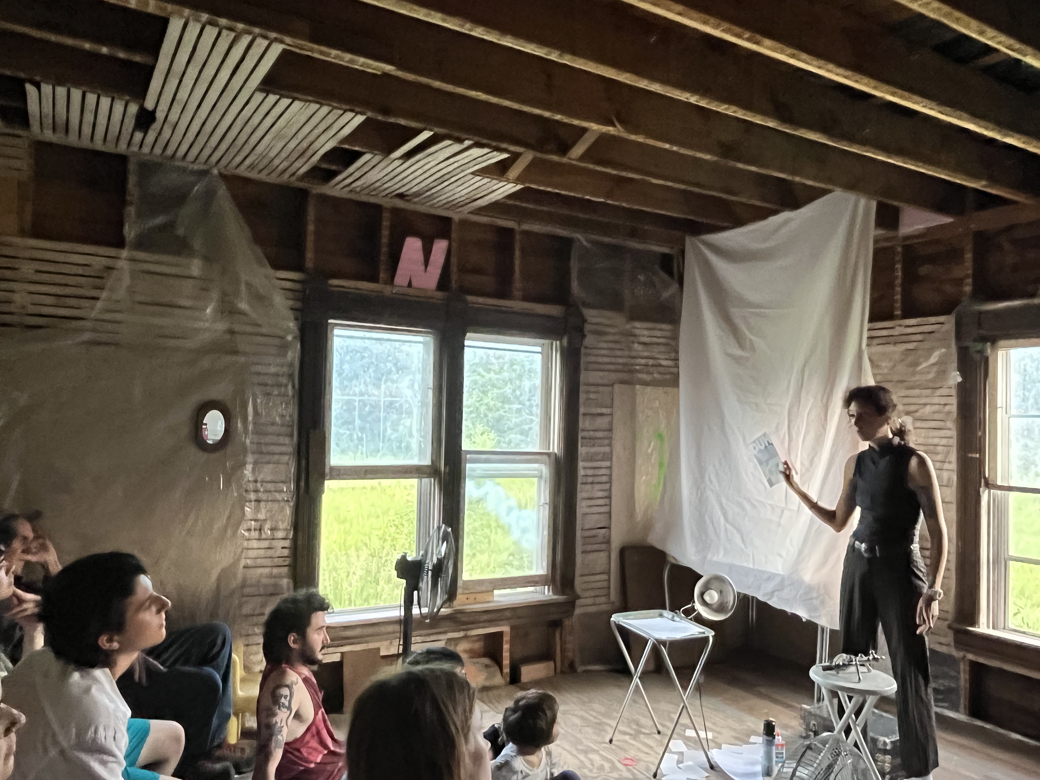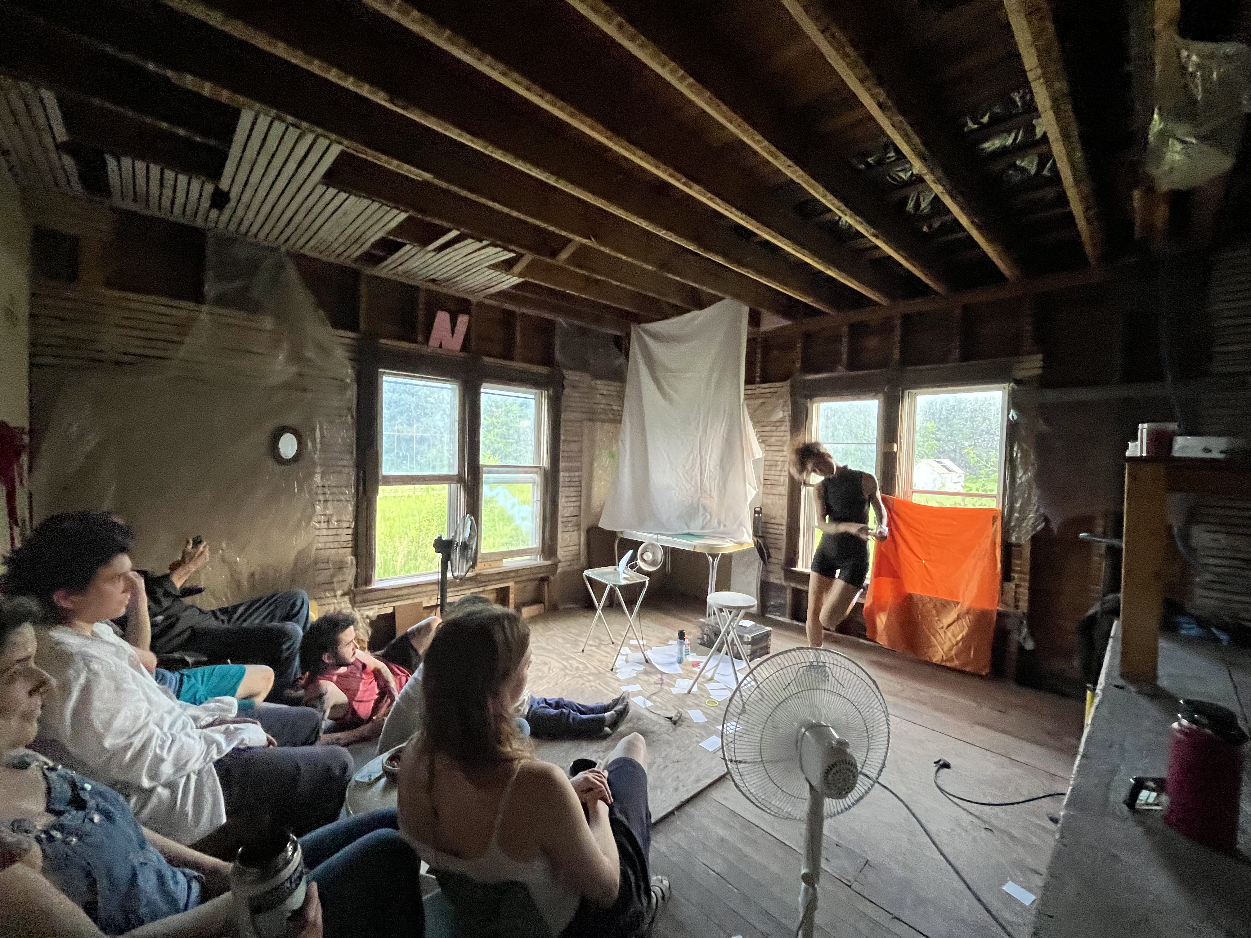 I developed a one hour version of this performance at Art Farm in Nebraska in June of 2024, in collaboration with Ruby Lanet. I performed this early version for my fellow residents in 90 degree heat. Some photos from that show are below and some clips are on my Instagram page here. This is more of a one woman show and is about trying to be an artist and also make money. And also things like how can making art improve your life in ways that don’t have to do with making money.