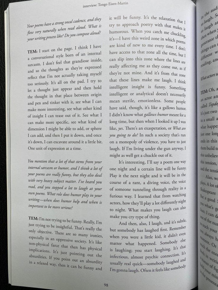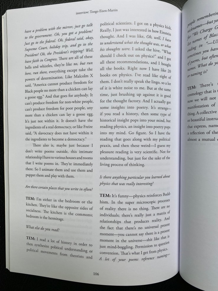 Interview with Tongo Eisen-Martin Share this: Share on X (Opens in new window) X Share on Facebook (Opens in new window) Facebook Like Loading...